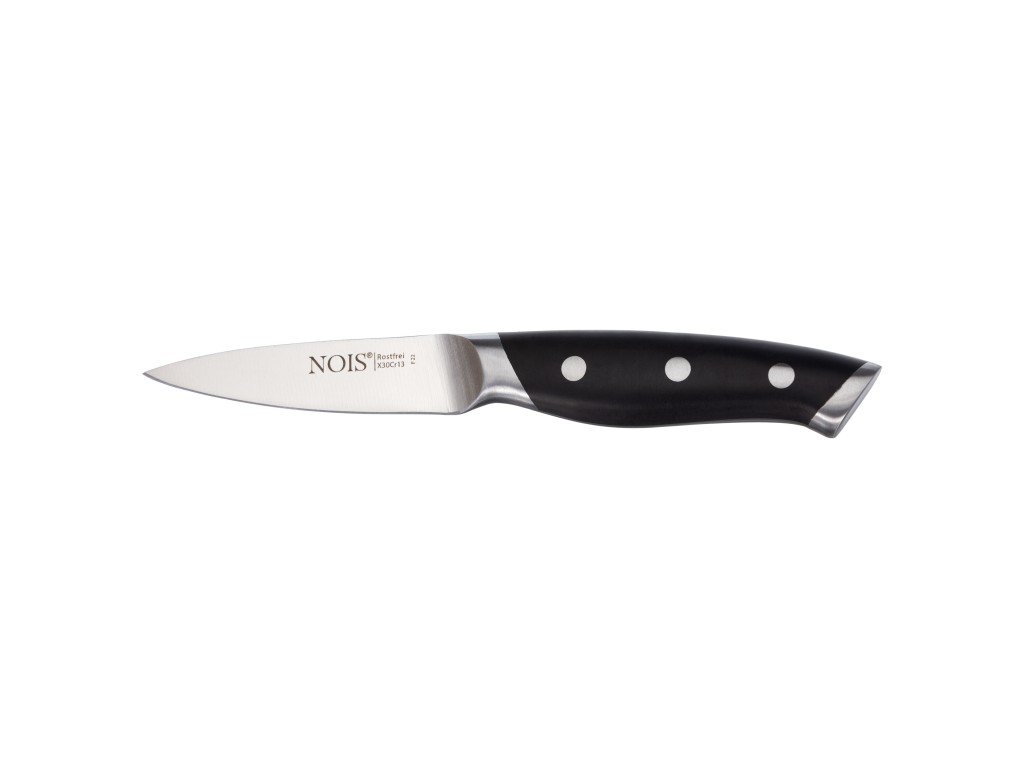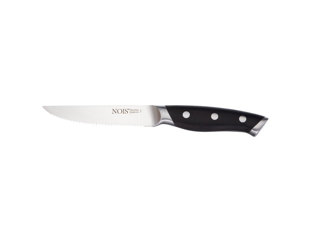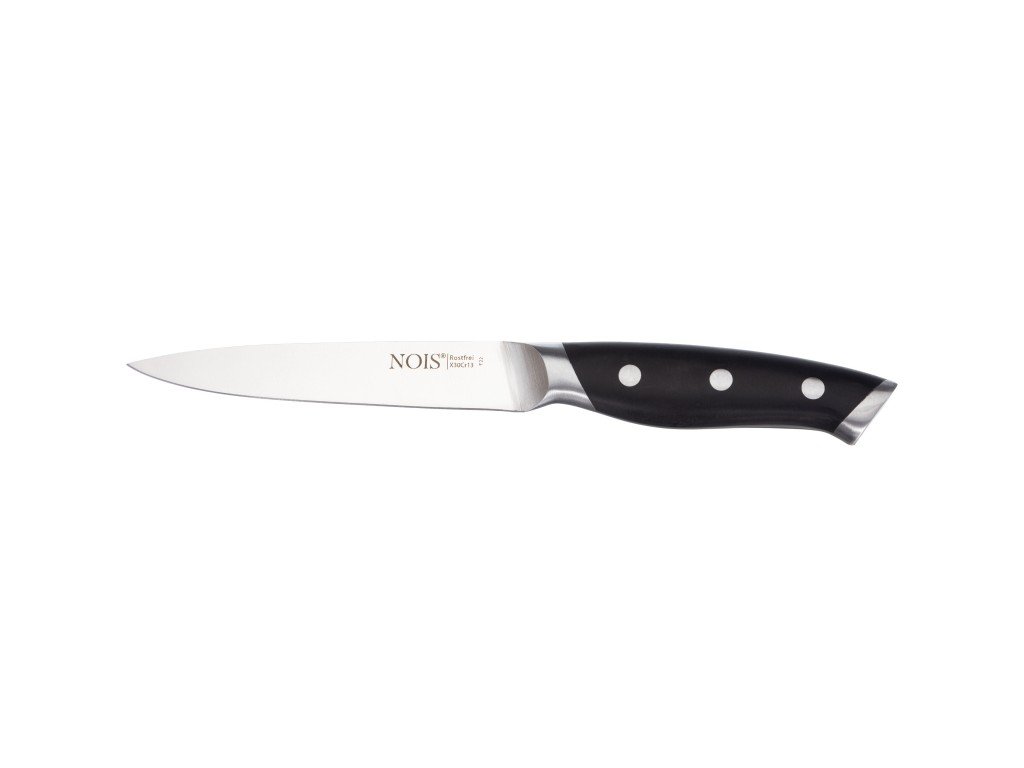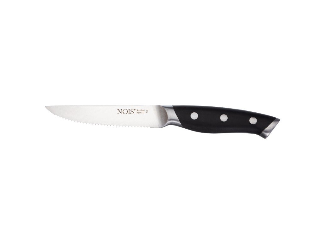 Sada FORGED od "NOIS" pozostáva z praktických a štýlových nožov, ktoré vám pomôžu pripraviť chutné raňajky, obed aj večeru. Nože sú vyrobené z valcovanej nerezovej ocele X30CR13 (obsahujúcej 13% chrómu) s tvrdosťou 52 +/- 2 HRC. Dizajn a tvar noža zaisťujú jednoduché používanie. Ostrá a tenká čepeľ ľahko prereže produkty rôznej tvrdosti. Hladký, starostlivo leštený povrch čepele umožňuje presné rezanie bez deformácie výrobkov. V mieste, kde sa čepeľ stretáva s rukoväťou, sa nehromadia baktérie a nečistoty. Zhrubnutie medzi čepeľou a rukoväťou noža poskytuje bezpečnú oporu pre ukazovák a tiež zlepšuje rovnováhu, čo umožňuje dlhú prácu bez únavy. Nože sa ľahko brúsia.