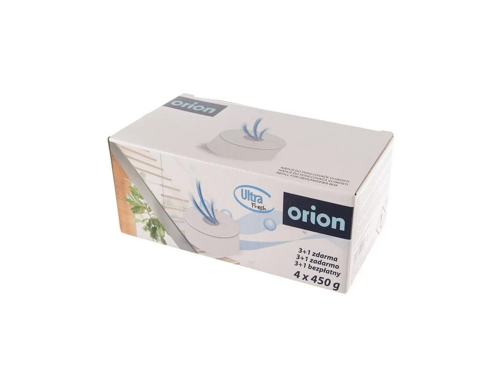 Sada 4 kusov náhradných náplní do pohlcovača vlhkosti vo forme tabliet, každá má hmotnosť 450 g a priemer 10 cm.