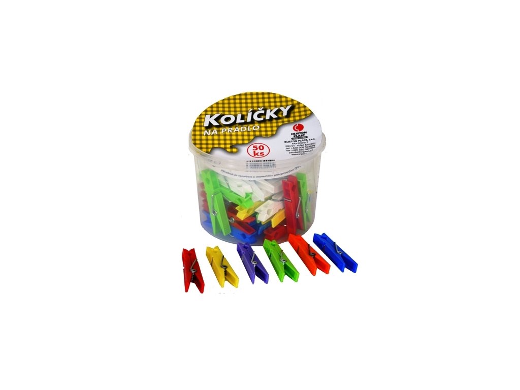 Klasické plastové štipce s kovovou pružinou. Vďaka kovovým pružinám je prádlo pevne zavesené.
